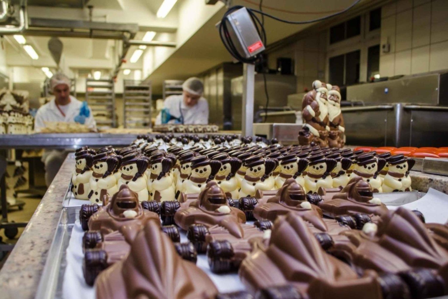 - Watch master chocolatiers at work through glass viewing windows