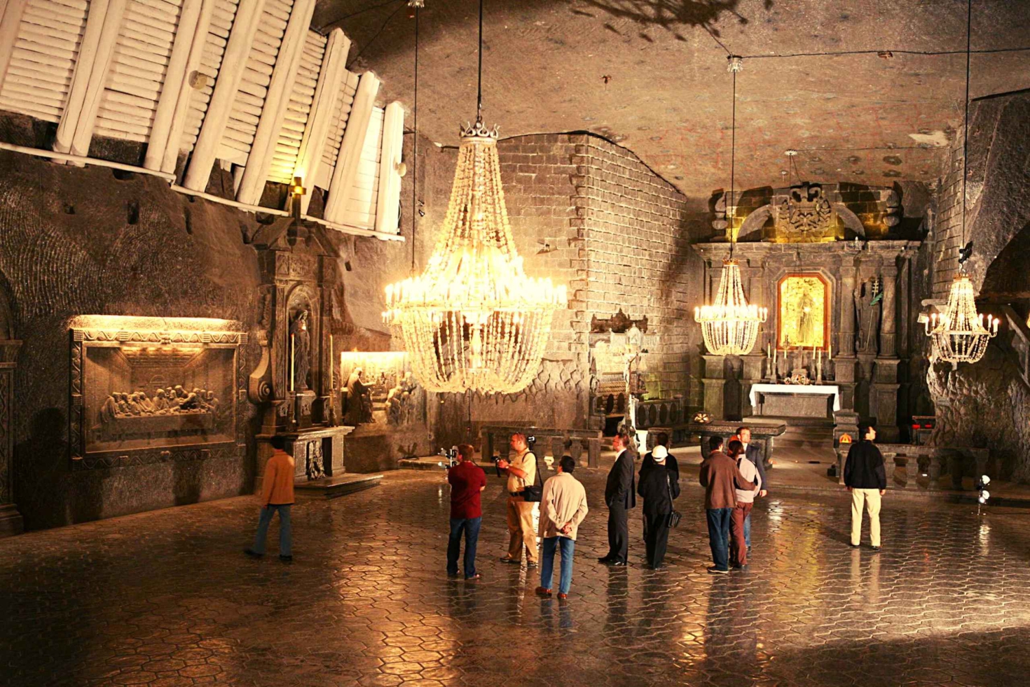 Cette excursion commence à Varsovie. Vous serez pris en charge à votre hôtel par un chauffeur anglophone. Vous visiterez d'abord la mine de sel de Wieliczka, construite au XIIIe siècle et qui a produit du sel de table sans interruption jusqu'en 1996. Sous le niveau du sol, vous trouverez des sculptures de sel, des lacs et des chambres incroyablement spectaculaires.