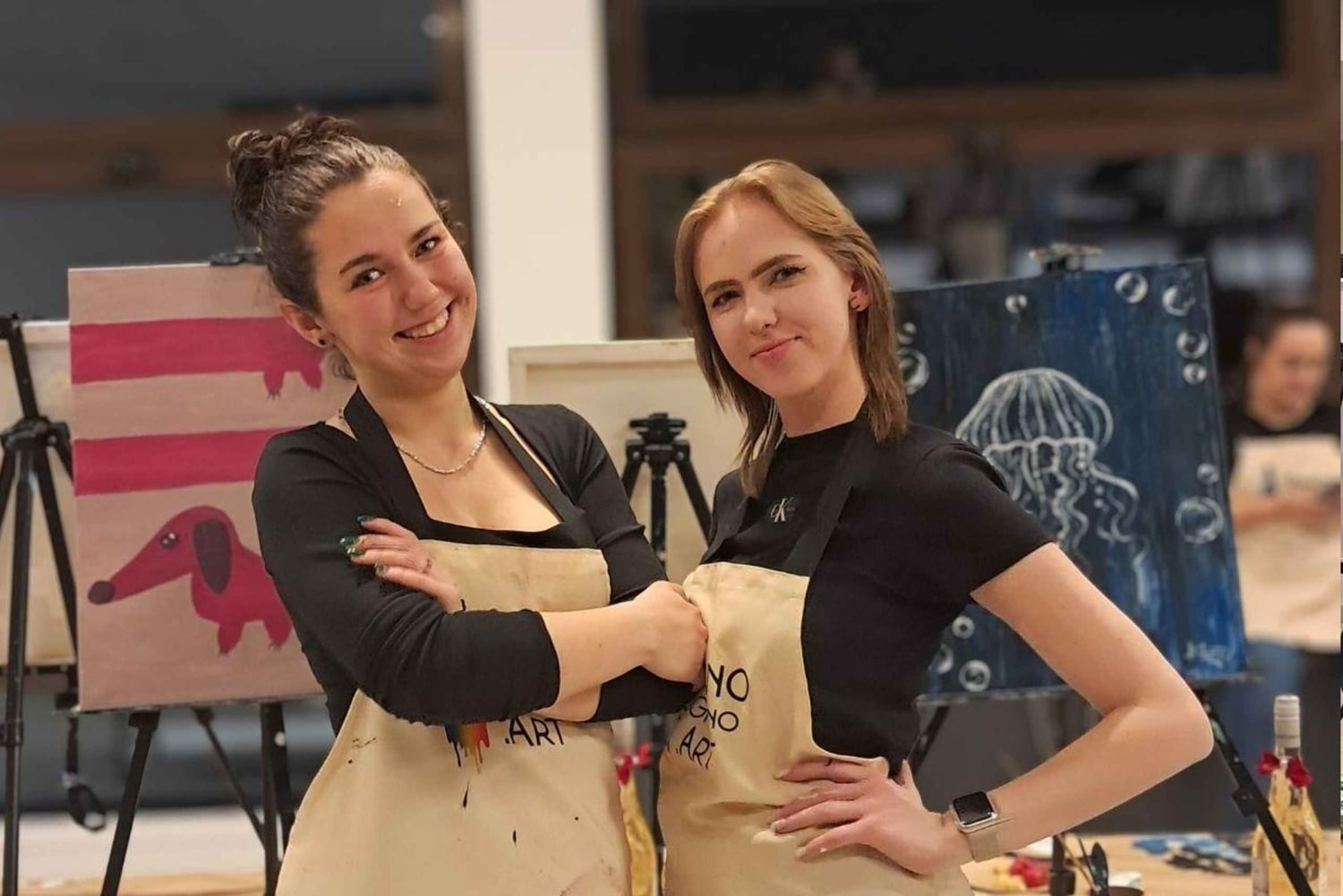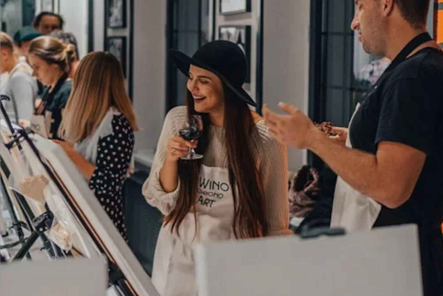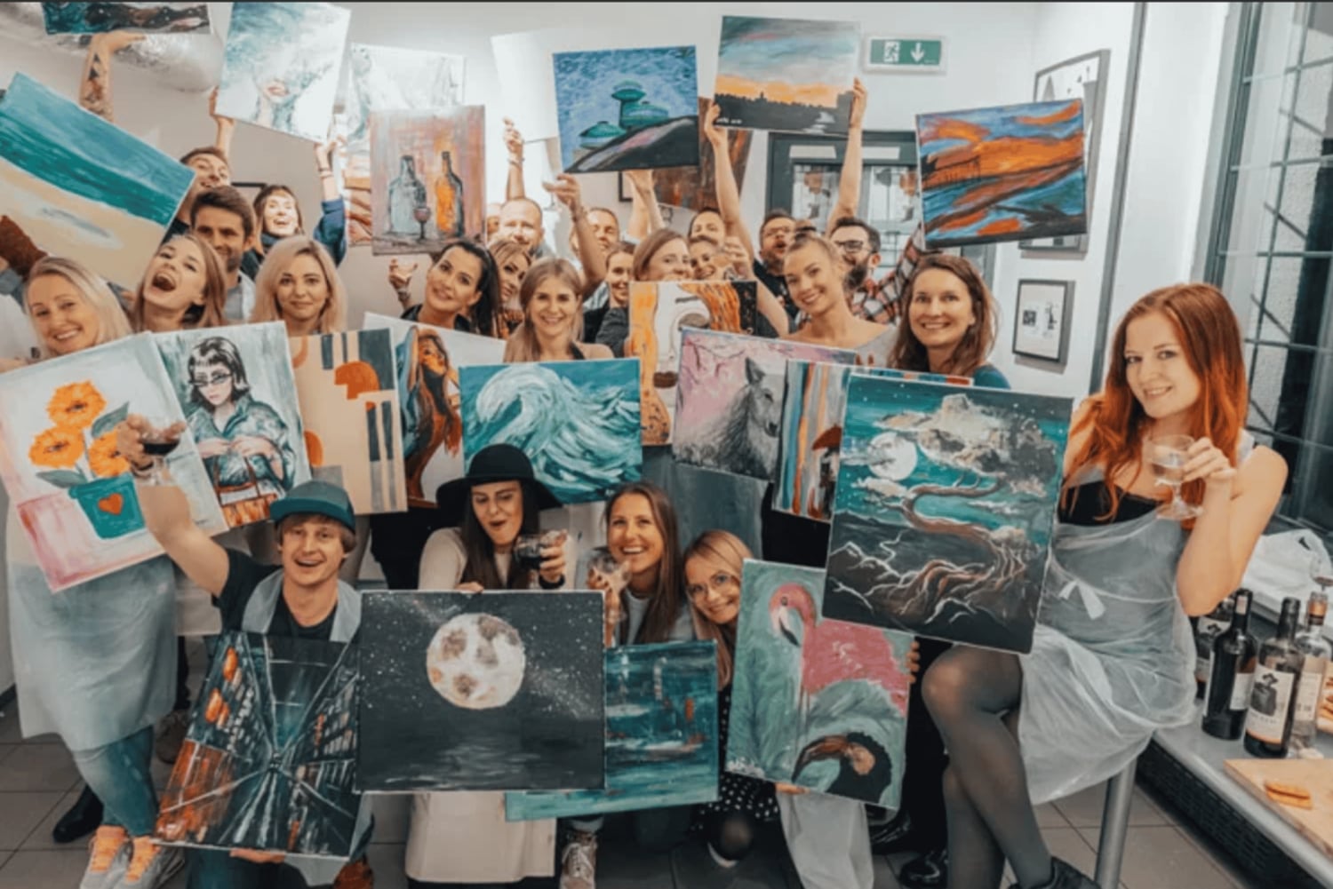 Tous nos événements sont menés en polonais. Mais ne vous inquiétez pas. Lors de nos événements, nous nous concentrons principalement sur la peinture et la dégustation de vin. Les discussions sont limitées. Tous les conseils de peinture sont fournis individuellement à votre poste, car nos artistes parlent anglais !