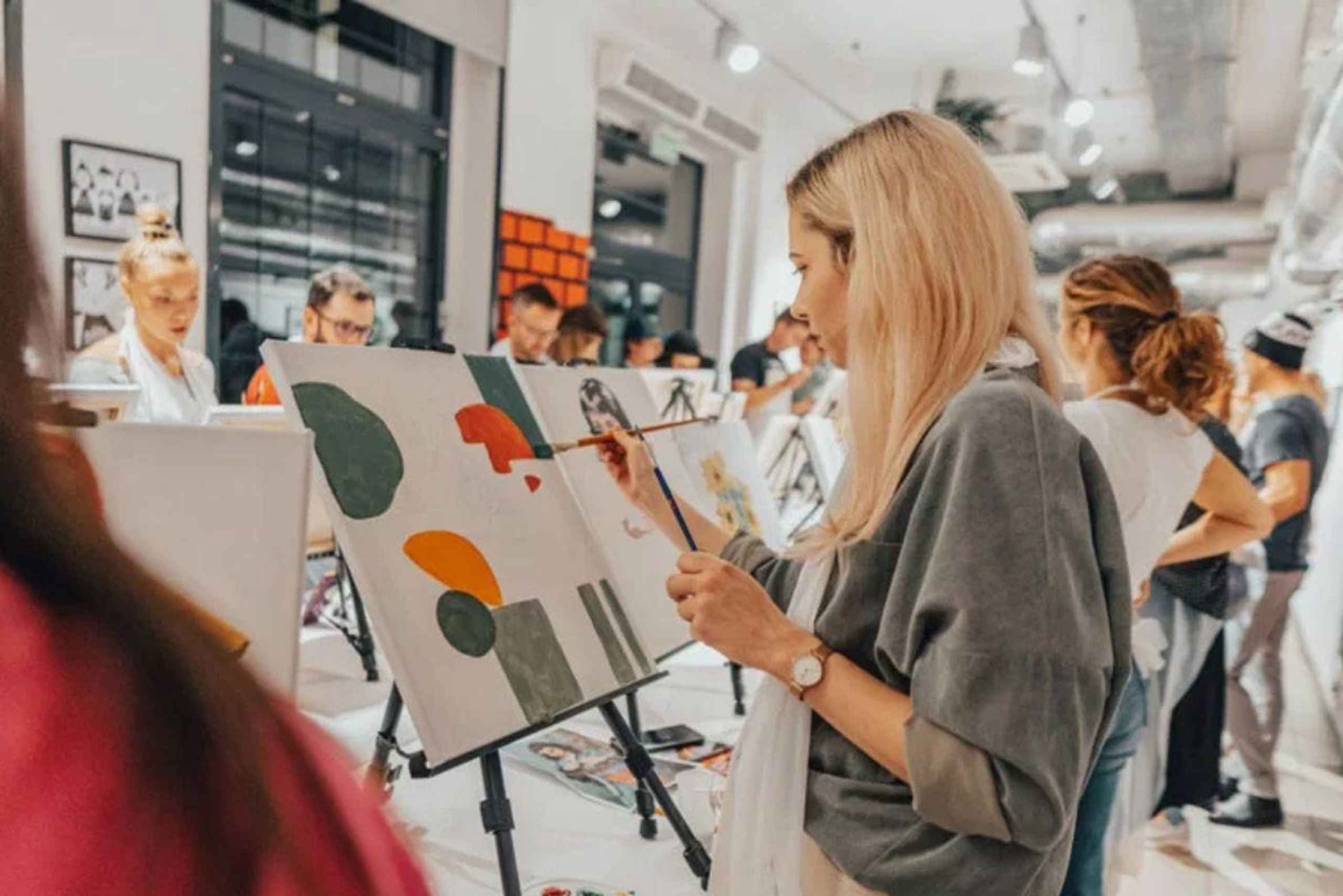 Aucune expérience préalable n'est requise. Vous serez guidée pas à pas par notre peintre professionnel, jusqu'à ce qu'une série de lignes et de taches se transforme en un chef-d'œuvre, prêt à être accroché au mur de votre salle à manger.