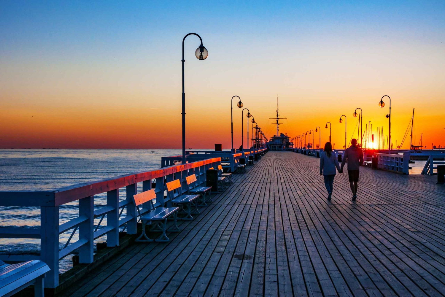 Nyt en heldags privat tur til de polske kystdestinasjonene Gdansk og Sopot. Du blir hentet av guiden din på hotellet eller i boligen din, og rundt kl. 07.00 reiser du fra Warszawa med ekspresstog til Gdansk. Ved ankomst kan du benytte anledningen til å utforske den gamle havnen, inkludert den berømte Kranporten. Du kan også se andre kjente lokale landemerker, blant annet Neptun-fontenen, Artus Court, rådhuset, det store arsenalet, tusenårstreet, Mariakirken med sin astronomiske klokke og mange andre vakre severdigheter i byen. Du kan også spasere langs Mariacka Street, som er kjent for sine sjarmerende terrasser fulle av ravsmykker.